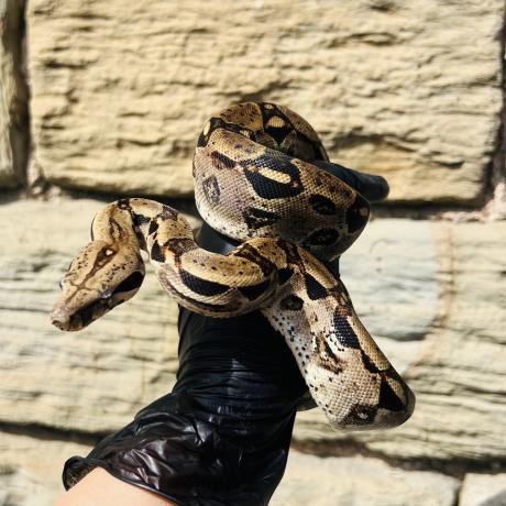 The Common Boa Constrictor can reach an adult length of 12ft but averages between 5-9ft. This species makes a great exotic pet, however a large enclosure is required when adult.