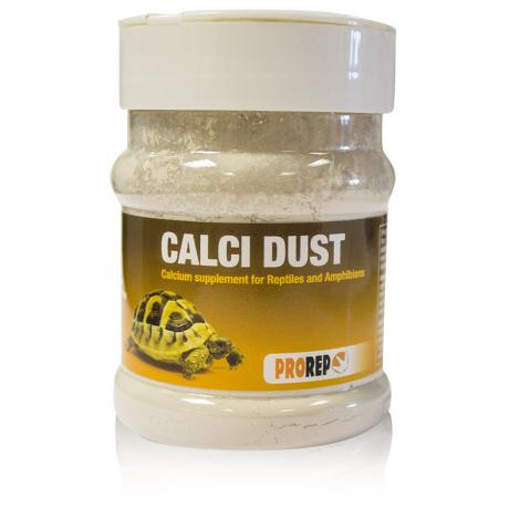 ProRep Calci Dust is a supplement for reptiles and amphibians. It is made from 100% natural calcium carbonate with no additives and is an excellent way to provide essential calcium and avoid deficiency diseases. It's micro-fine particle size ensures excellent adhesion to both live insects and plant material.